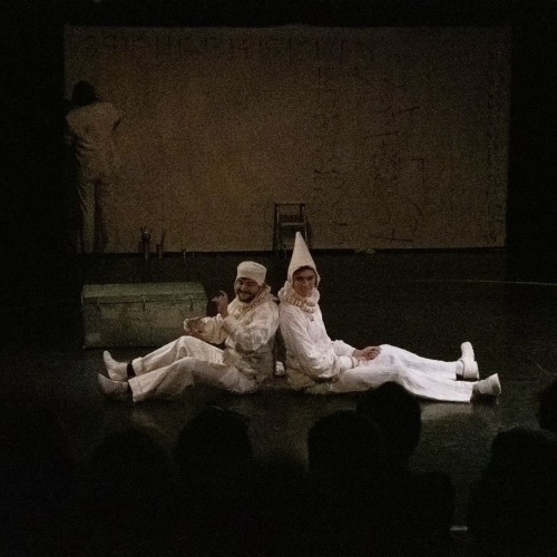Afficher le planUn jeune homme masqué d’un sac en toile de jute arrive dans un cirque en ruine, sans souvenir de son passé. Il y rencontre un peintre, deux clowns et une tragédienne, derniers survivants d’un monde ravagé où l’on ne se nourrit plus que de quelques oranges. Le jeune homme se lance alors à la recherche du dernier oranger… et de sa mémoire. Écriture et mise en scène Sarah Loufrani Jeu Antoine Lutinier, Maxence Boszormenyi, Mihai Pircalabescu, Mati Galey et Sarah Loufrani Lumière Nathan Blandin Scénographie / Accessoire Sacha Teboul Costume Yulong Song
