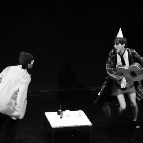 Écriture Slawomir Mrozek Traduction Gabriel Meretik Mise en scène Louise Thiers Jeu Nathan Prieur et Maxime Djordjalian